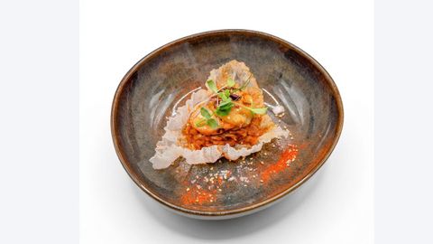 Buscando propuestas saciantes, aparece el crocante de panceta con patata y jengibre encurtido en O Crisol. También con sabor a panceta, son los puerros en salsa de queso emmental del Plaza. El abanico es amplio. Para los amantes de lo asiático, su mejor opción es la vieira. En Portiño la ofrecerán cocinada a la marinera con crocante de arroz y un toque nipón, en El Patio será en tartar, curada con alga kombu y manzana, acompañada de salmorejo, pero en el Casino irá acompañada de xarda marinada.