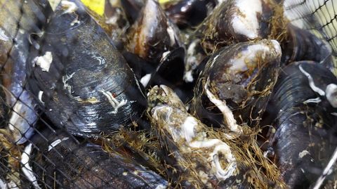 La vieira se ofreció a 2,50 euros la unidad, con picos de hasta tres, dependiendo del puesto y el mercado. El mejillón se situó entre los dos y los tres euros el kilo en las plazas de la comarca.