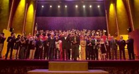 16 abr 2002 . Actualizado a las 07:00 h.Un escenario ecológico y una ambientación musical acogió el lunes la gala de entrega de estos premios promovidos por la Sociedad General de Autores y Editores (SGAE). Los actores Nina y Xavi Mira fueron los encargados de presentar esta gala, en la que no faltaron las reivindicaciones hacia los autores vivos, la solidaridad con el pueblo palestino o la emoción del veterano director de escena y empresario José Tamayo al recibir el Premio de Honor de manos de los responsables de la SGAE, Ana Diosdado y Eduardo Bautista. Tamayo, al agradecer este premio, confesó que se encontraba «muy vivo y con mucha ilusión para seguir trabajando por el teatro». Con más de una hora de adelanto llegó Andrea D¿Odorico (empresario responsable de la obra ganadora Panorama desde el puente ) quien recogió buena parte de los premios obtenidos, entre ellos el destinado al director Miguel Narros, que no pudo estar presente en la ceremonia. Llamó la atención la primera reivindicación de la noche, que llegó de la mano del premiado con el galardón especial al Espectáculo de Artes Escénicas con mayor presencia internacional ( Después de la lluvia, de Sergi Belbel). Belbel recordó la necesidad de tener presentes a los autores vivos españoles, a los que dedicó su premio. Helio Pedregal, que recibió el Premio al Mejor Actor Protagonista por Panorama desde el puente , se refirió al teatro como «un hecho vivo». Por su parte, Blanca Portillo, que competía con Nuria Espert y Julia Gutiérrez Caba, rebosaba de felicidad al recibir el galardón a mejor actriz por Madre, el drama padre.