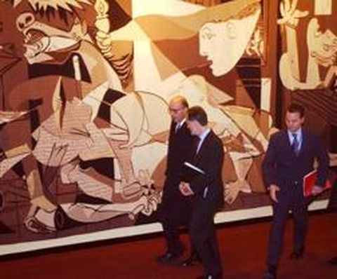 31 ene 2003 . Actualizado a las 06:00 h.En la sede de la Organización de las Naciones Unidas, ONU, se escuchan más los tambores de guerra que la campana de la paz y como botón de muestra un ejemplo que podría ser, además, un caso de clara censura: el tapiz del Guernica, de Picasso, situado a la entrada del Consejo de Seguridad ha sido tapado con una cortina. La razón apuntada es que en ese tramo, que da acceso al Consejo de Seguridad, se ha colocado el micrófono en el que hacen sus declaraciones a la prensa los diplomáticos y los funcionarios de la ONU, léase el ahora famoso jefe de los inspectores desplazados a Irak, Hans Blix, o, el próximo día 5 de febrero, el secretario de Estado norteamericano, Colin Powell. Azul de fondo neutro A tal efecto y para poner un fondo neutro, la reproducción del cuadro del artista español, que despedaza los horrores de la guerra basándose precisamente en la confrontación que tuvo lugar en España, apareció cubierta el pasado día 27 de enero con una gran cortina del color institucional de la ONU, el azul. «Es el fondo apropiado para las cámaras», explicó Fred Eckhard, portavoz de la organización internacional al ser preguntado por la desaparición del Guernica. Algún diplomático no tan bien pensado cree que la razón es que «no sería conveniente que el embajador de Estados Unidos ante la ONU, John Negroponte, o el mismo Powell, hable de guerra rodeado de mujeres, niños y animales que gritan con horror y muestran el sufrimiento de un bombardeo». Y otras fuentes diplomáticas apostillan que «menos aún cuando esa guerra comenzará con una campaña aérea». La reproducción de la obra de Picasso, un tapiz prestado por la familia Rockefeller, recuerda precisamente el bombardeo que durante la guerra civil española la aviación alemana perpetró contra la población de Guernica, en 1937. El tapiz, que fue encargado por Rockefeller en 1955, tiene tres metros de alto y casi siete de largo y fue confeccionada en el taller del maestro J. de la Baume-Durrbach, en la localidad francesa de Var. Recuerdo de lo atroz El tapiz, uno de los autorizados personalmente por Pablo Picasso, fue donado por Nelson A. Rockefeller y se colocó el 13 de septiembre de 1985 en una ceremonia en la que fue descubierto por el entonces secretario general de las Naciones Unidas, Javier Pérez de Cuéllar. La reproducción quedó así como un permanente recordatorio de las atrocidades de un conflicto bélico en una organización que tiene como misión principal «preservar a las generaciones venideras del flagelo de la guerra», según el preámbulo de la Carta de las Naciones Unidas. Y con tal fin, su artículo primero establece que la ONU podrá «tomar medidas colectivas eficaces para prevenir y eliminar amenazas a la paz, y para suprimir actos de agresión u otros quebrantamientos de la paz». En ese mismo artículo se destaca la necesidad de lograr «por medios pacíficos», y de acuerdo con «los principios de la Justicia y del derecho internacional», la solución de las «controversias o situaciones internacionales susceptibles de conducir a quebrantamientos de la paz». Y para que el recordatorio del Guernica estuviera más presente en la mente de todos, el tapiz se instaló en el pasillo que da entrada al Consejo de Seguridad, órgano que tiene el mayor poder de decisión y al que se considera encargado de velar por esa paz y seguridad internacional. El 11 de septiembre de 2001, Annan hizo tocar la «campana de la paz», una tradición que se repite todos los años al inicio de cada sesión de la Asamblea General de Naciones Unidas. Pero al día siguiente, el presidente de los Estados Unidos, George W. Bush, declaró a Irak como una amenaza para su país y desde entonces en la sede de la organización internacional se escucha más la palabra guerra que paz. En la ONU son muy pocos los que dudan de que, con más de cien mil soldados estadounidenses ya desplegados en el Golfo Pérsico, la guerra comenzará en las próximas semanas. Y así hay quien piensa que «quizá por ética, más que por estética, lo mejor sea cubrir el Guernica para no ofender el sufrimiento que representa».