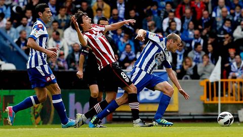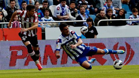 Uno de los problemas que auguraba Vázquez de cara al duelo con los bilbaínos era la imposibilidad de sacar el balón con garantías frente a la presión individual que suele practicar el Athletic. Así ocurrió. El Dépor había mandado en los últimos encuentros, pero en el de ayer fue el rival el que tuvo casi el 60% de la posesión y mientras los visitantes mostraban un notable acierto en el pase (85%), los locales erraban uno de cada cuatro intentos de conectar con el compañero. La falta de opciones para jugar la pelota convirtió a Manuel Pablo en el segundo futbolista blanquiazul que más veces intervino en el juego, solo por detrás de Pizzi.
