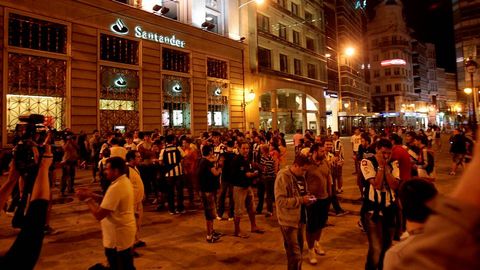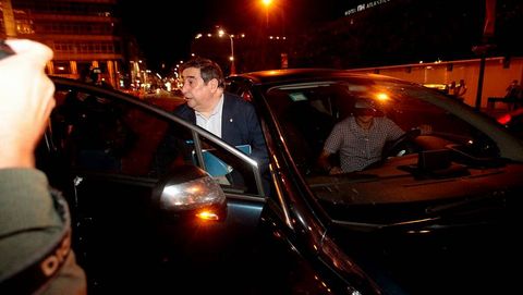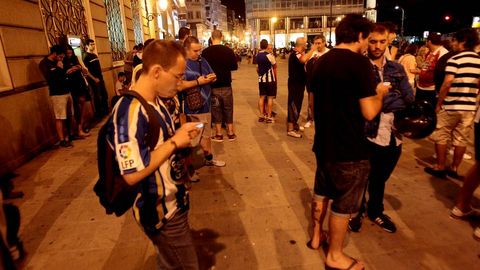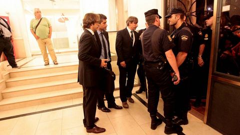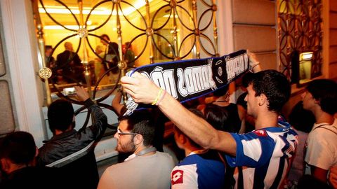 Con los medios apostados ante la puerta del despacho, solo uno de los administradores concursales, acompañado por un abogado, abandonó el edificio por una puerta trasera, antes de que se cerrará la principal debido a la afluencia de un grupo de aficionados.