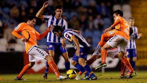 Tras una hora de clara superioridad, con dos delanteros, el Dépor acabó pidiendo la hora y aferrándose a su solidez defensiva sin delanteros y con tres centrales