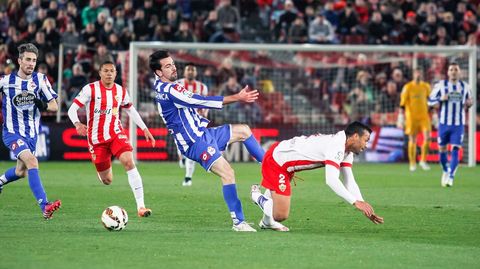 Con el motor de La Sagrada. La penúltima fue un voleón desde fuera del área con la firma de Bergantiños, que tuvo su día otra vez. Como casi siempre desde aquel partido frente al Elche, Alex demostró su condición de jugador fundamental para el Dépor. Después de varios años de labor gris, el de La Sagrada es sin duda el jugador que más (y mejor) ha crecido a las órdenes de Víctor Fernández. En las últimas citas le ha ayudado además contar en el doble pivote con una pareja capacitada para el trabajo de destrucción. Eso permite que el canterano reparta esfuerzos en las ayudas y colabore en la creación. Ayer volvió a ser el futbolista que más veces tocó el balón de los que saltaron al campo y persistió en su atrevimiento con los desplazamientos en largo. Una búsqueda del compañero a espaldas de la zaga rival que dio a Riera dos claras ocasiones de gol y permitió ganar la línea de fondo a José Rodríguez y Helder Costa.