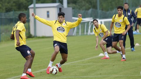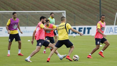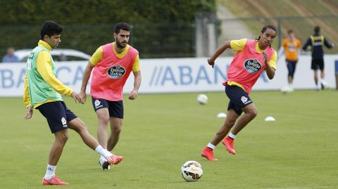 Tras la tempestad del jueves, ayer regresó la calma al entrenamiento deportivista, en el que el fútbol volvió a llevarse todo el protagonismo. La veintena de aficionados que acudieron a Abegondo, muchos acompañados de niños, siguieron en silencio los ejercicios y apenas reaccionaron cuando los jugadores se retiraron a los vestuarios. Tan solo un espontáneo grito de «vamos, Álex, ánimo», en alusión a Bergantiños, brotó de la grada, vigilada por agentes de la Guardia Civil y de la seguridad privada del club. Concluida la tarea, toda la atención se volvió hacia la convocatoria de Víctor Sánchez, quien se había retirado del césped mientras charlaba brevemente con el consejero Fernando Vidal y los responsables de la secretaría técnica, Richard Barral y Ernesto Bello.