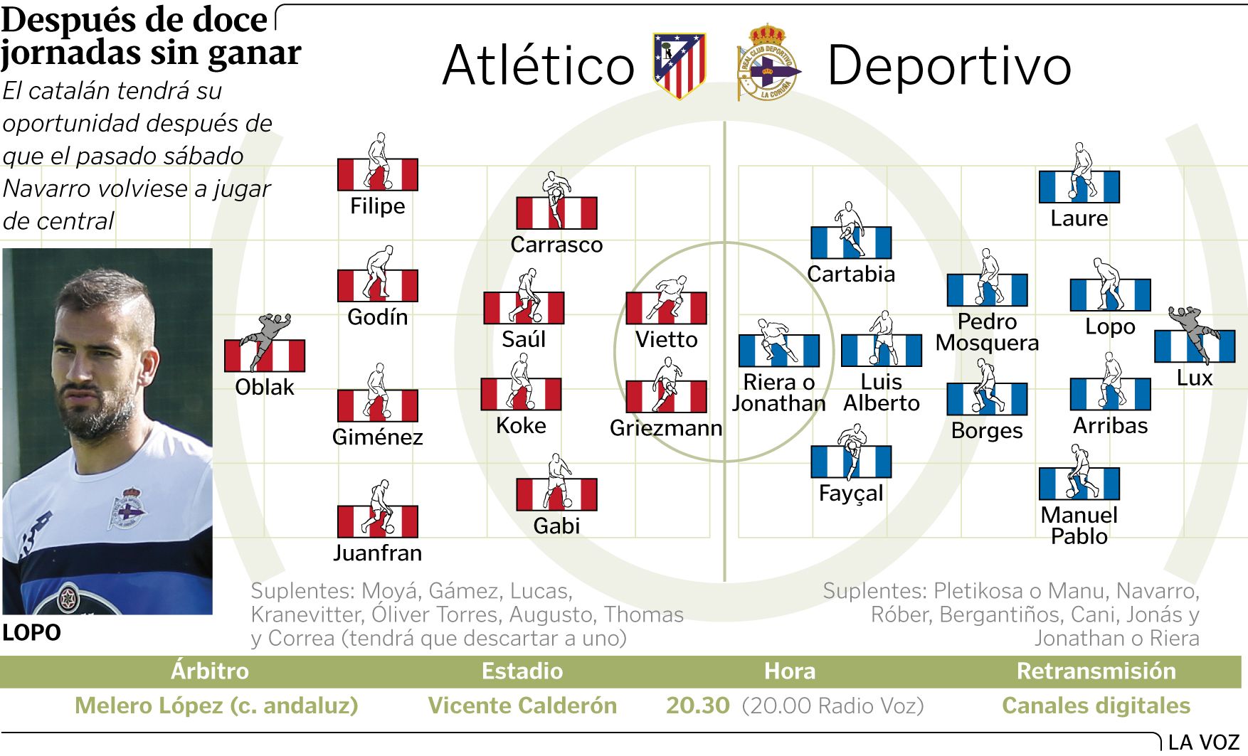 12 mar 2016 . Actualizado a las 18:54 h.Competir y pensar en la próxima jornada. El Dépor, con siete puntos sobre la zona de descenso, afronta el desembarco en el Calderón con dos objetivos definidos y que encierran buena parte de sus expectativas para las nueve últimas jornadas de Liga. Alcanzará la primera meta, si sigue trabajando en el afán individual y colectivo de los últimos partidos. Solo así será capaz de disfrutar, al tiempo que despertará los aplausos de los aficionados en un camino que muchos pintaron repleto de margaritas y ahora parece ensombrecerse. Quizá el espejo de su adversario de esta noche, el Atlético de Madrid, en las últimas temporadas quizá el equipo más admirablemente agarrado a la búsqueda constante del máximo de sus posibilidades, le sirva para reencontrarse con una versión propia no tan lejana. En la primera vuelta los coruñeses jugaban con una seriedad elogiable y que, salvo para instantes puntuales, ha quedado apartada en el armario de las mejores galas.