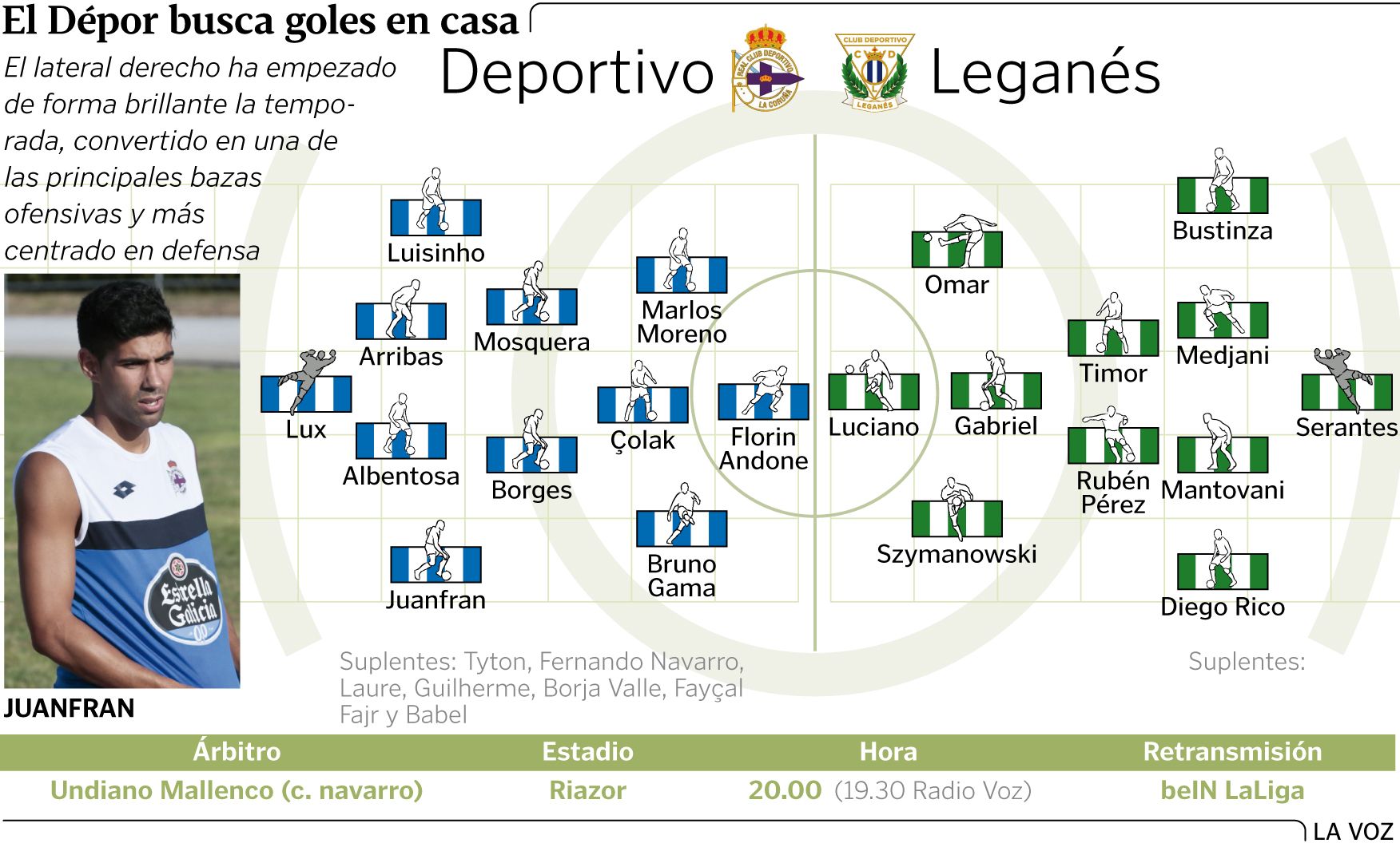 22 sep 2016 . Actualizado a las 18:31 h.El que más balones roba, el que más transiciones intercepta, el que más faltas comete... El Dépor va a echar la tarde embistiendo un muro para intentar resolver sus problemas de sequía. Le falta gol a los blanquiazules en su cuenta de resultados y por eso no lleva más que cinco puntos sobre doce durante un tramo benévolo (a priori) del calendario. Las citas con equipos de similar nivel al de los coruñeses, según dicta el presupuesto, harán un alto este fin de semana en el Calderón. Antes, llega el Leganés a Riazor cargando el lastre de esa manita de un Barça frente al que el conjunto pepinero rebajó su solidez. Los del otro Garitano (Asier) han pagado la novatada en Primera midiéndose a adversarios especialmente complicados; y si han plantado cara al Celta en Balaídos (0-1) y al Atlético en Butarque (0-0) ha sido gracias a una solidaridad y un rigor en el repliegue que les lleva a liderar varios apartados estadísticos defensivos en el campeonato.