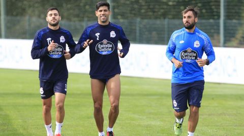 06 oct 2016 . Actualizado a las 13:14 h.La plantilla deportivista retomó ayer el trabajo en las instalaciones de Abegondo tras dos días de descanso. La principal novedad radicó en la presencia del nuevo readaptador deportivo tras la salida de Pablo López. Fran Molano participó en su primera jornada al lado de la plantilla y se le vio trabajar sobre el césped junto al lesionado Carles Gil y Juanfran, quien esta semana sin competición rebajará la intensidad de sus entrenamientos. En estos días tampoco se ejercitará al mismo ritmo que sus compañeros el portero Lux.