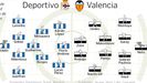 Con este sistema de juego, el técnico blanquiazul refuerza el medio del campo, al introducir un trivote, como sucedió en Villarreal, y deja a la velocidad y lucha de Andone y Lucas, y al virtuosismo de Adrián, la posibilidades en ataque para vencer a un Valencia que llega a Riazor tras reencontrarse con la victoria el pasado fin de semana después de tres derrotas consecutivas. Del Dépor y su tridente depende que vuelva al camino de los malos resultados.