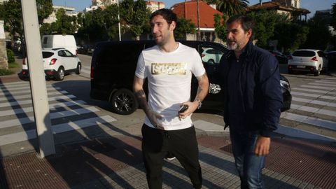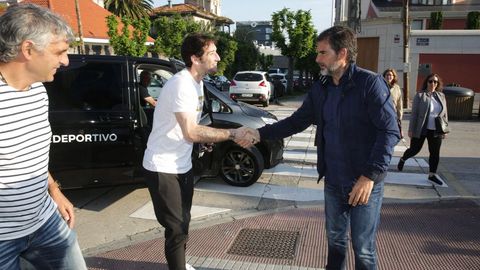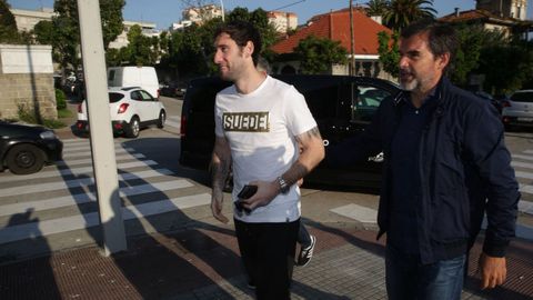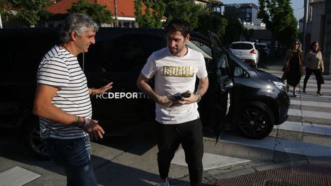 Acompañado por el director deportivo en Abegondo tras pasar el reconocimiento médico en el Modelo