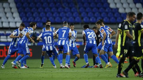 Esta temporada, los jugadores del Deportivo saltan al campo cinco minutos antes de iniciarse el segundo tiempo para realizar ejercicios físicos específicos