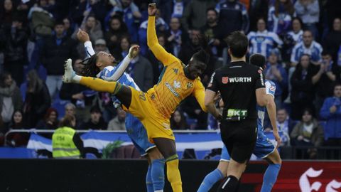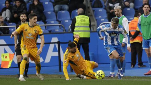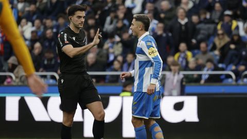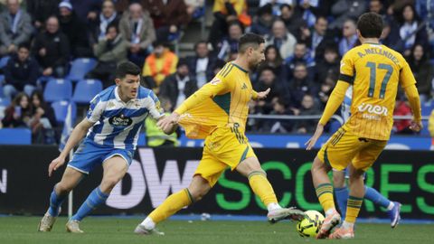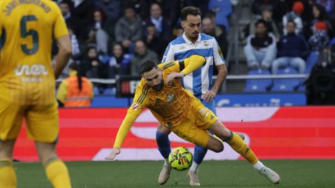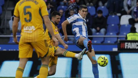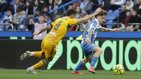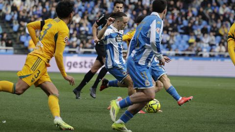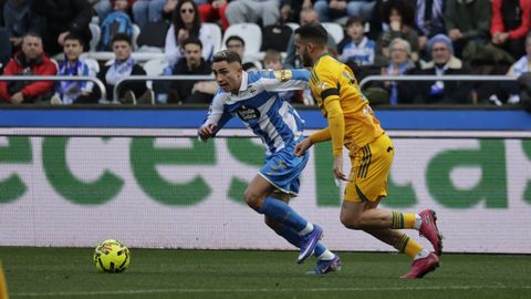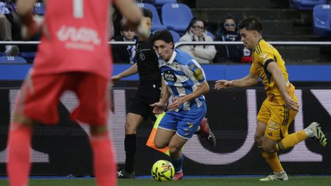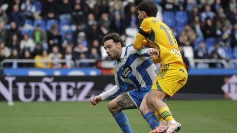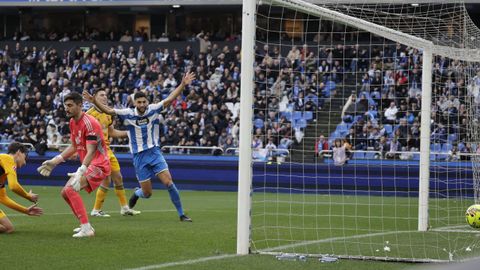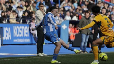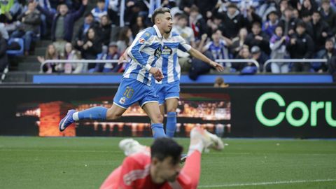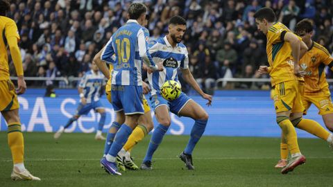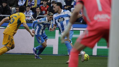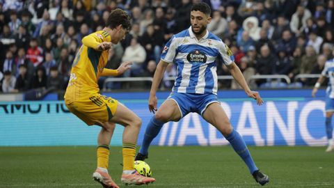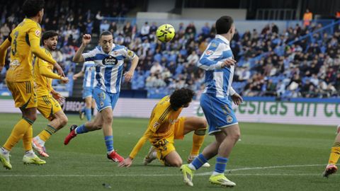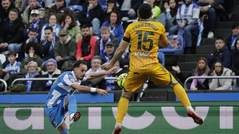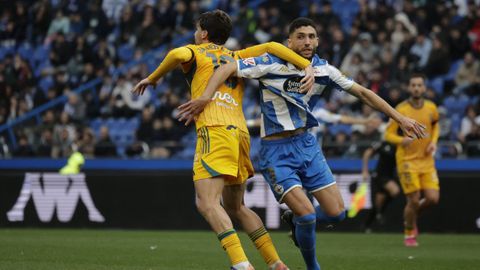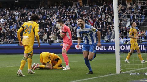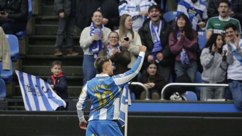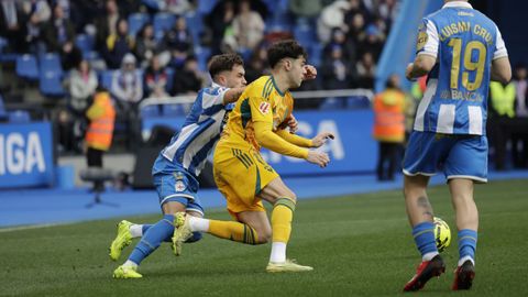 El mago, que pasaba desapercibido hasta entonces, hizo la pared con José Ángel y la colocó en el palo más alejado de la portería visitante. Como si fuese una jugada de billar, su chut, más tenso que fuerte, más colocado que en parábola, tocó en el palo y besó la red a los 25 minutos. Inmediatamente después, en un rápido contragolpe, Mario soriano cayó en el área claramente arrollado por un defensa visitante sin que el árbitro pitase el claro penalti ni el VAR le rectificase. No fue la única polémica. El defensa visitante Javi Moreno despejó con la mano en un lance en el área con Eddahchouri, pero el colegiado entendió que previamente el deportivista se había ayudado del brazo para tratar de controlar el balón.