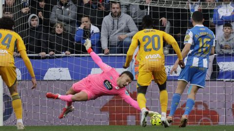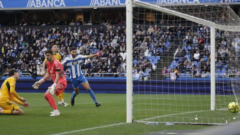 Hidalgo movió piezas entonces. Entraron Mulattieri y Riki, que se llevó su primera gran ovación. Pero otra vez la ocasión cayó del lado del Albacete. Obeng cabeceó a quemarropa, pero fuera desde el primer palo, un centro de Valverde. El empate rondó a un cuarto de hora para el final. Otro centro desde la derecha del ataque visitante dejó a Álex Rubio solo en el primer palo, pero Ferllo detuvo seguro su flojo remate. El portero deportivista se creció en la siguiente acción, cuando otra vez Obeng en el área habilitó a San Bartolomé, pero el meta detuvo felino su chut cruzado, que olía a empate. En plena prolongación, Mulattieri no alcanzó por un suspiro el centro chut de Yeremay, pero los puntos ya no se movieron.