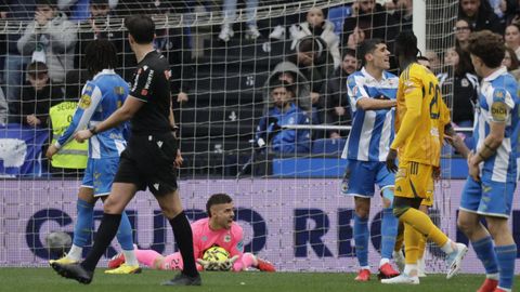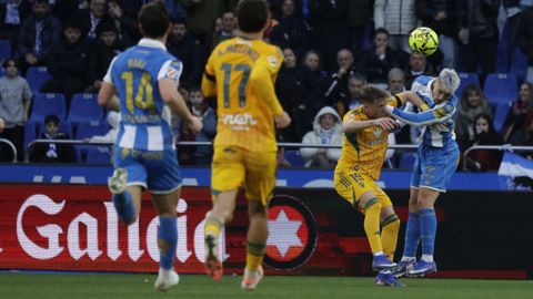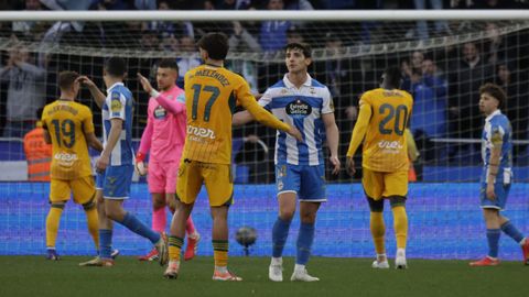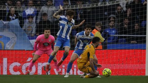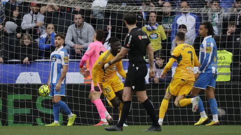 El largo parón por la revisión en las oficinas del VAR enfrió a un Dépor al que costó regresar al partido. Tanto, que a punto estuvo de echar por tierra todo el trabajo anterior. Nada más reanudarse el juego, Lazo pilló desprevenido a Ferllo en un disparo centrado que el meta se quitó de encima como pudo para despejarlo a córner. No acabó ahí la pájara deportivista. Noubi, el mejor de la primera parte, bloqueó el disparo a bocajarro de Jefté y, en el rechace, Vallejo disparó al lateral de la red. En el último suspiro antes del descanso, el colegiado anuló el gol de Valverde por una pugna en el área local con Mella. Pero el Deportivo puso tierra de por medio justo antes de volver a los vestuarios. Javi Villar introdujo el balón en su propia portería tras una buena combinación entre el propio Mella y Alti. El centro de este desde la línea de fondo fue empujado por Javi Villar hacia su propia portería para establecer el 2-0.