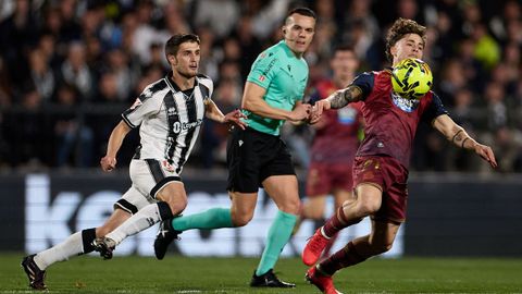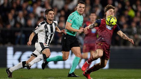 A los 52 minutos, tras un gran pase de Riki a la carrera de Mella, el centro de este lo tocó Zakaria cuando Yeremay se relamía a su espalda. Y, de inmediato, el centro de Altimira encontró en perpendicular a la portería al delantero neerlandés, pero los centrales volvieron a molestarlo lo suficiente para que su remate se perdiese fuera. En la oportunidad más clara, solo un suspiro después, tras una combinación entre Yeremay y Quagliata, con centro de este al área, el remate de Mario Soriano pegó en un defensa, se estrelló en el larguero y se marchó a córner.
