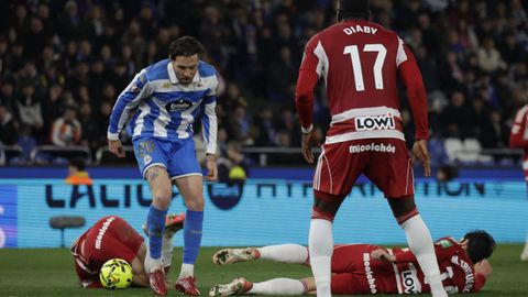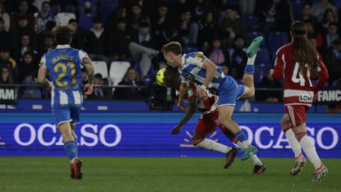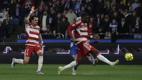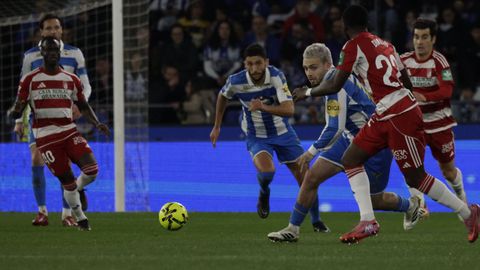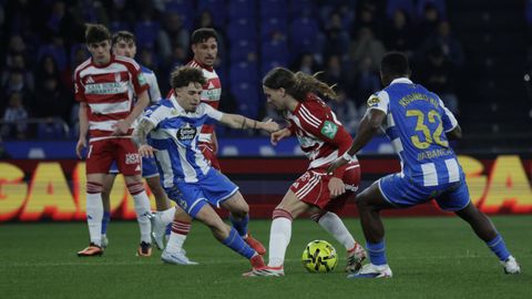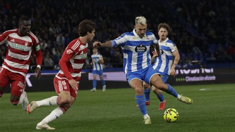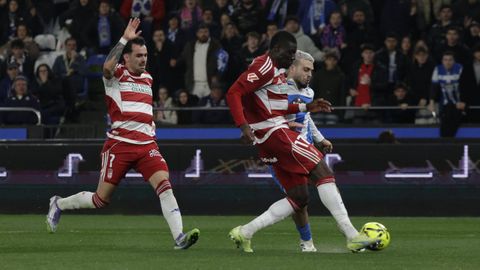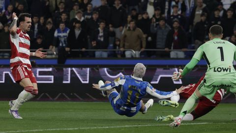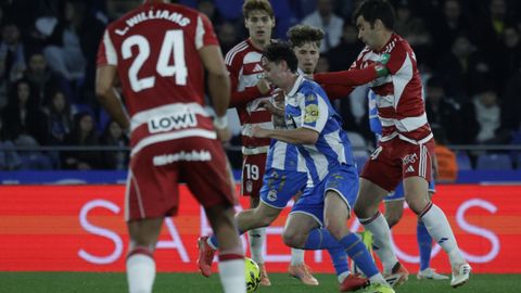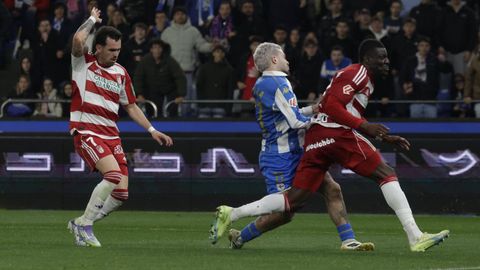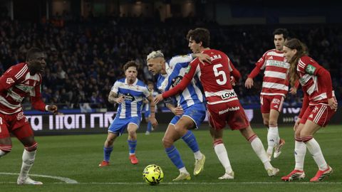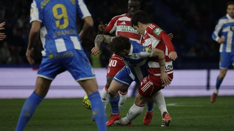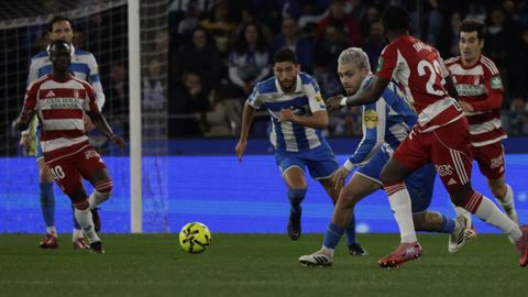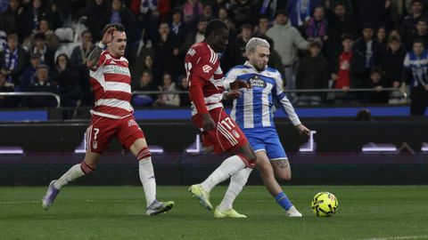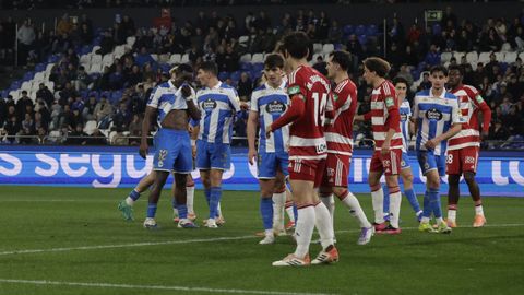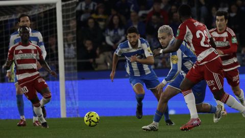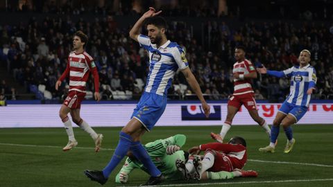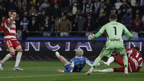 El carrusel de relevos no sentó bien a los blanquiazules, que perdieron impulso y se vieron de nuevo empujados contra su área. A veinte minutos del final Hidalgo quemó naves con la entrada de Mulattieri, desapercibido hasta que marró la última ocasión del choque, pero lo cierto es que al Dépor ya le costaba un riñón penetrar en las líneas de un Granada pertrechado a la espera de sentenciar.