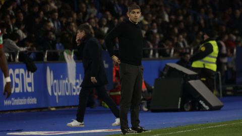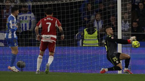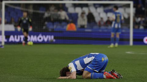 El gol desató los temblores blanquiazules. Una dejada de tacón de Sola que Trigueros estrelló en el cuerpo de Ferllo en un disparo a bocajarro provocó los primeros pitos de una grada que comenzaba a perder la paciencia. El Deportivo trenzó su primera jugada de cierto mérito a los 37 minutos. Por fin el mediocampo cocinó a fuego lento, Loureiro aceleró y el buen centro de Quagliata acabó tras el rechace en el disparo de volea de Stoichkov que se perdió desviado.