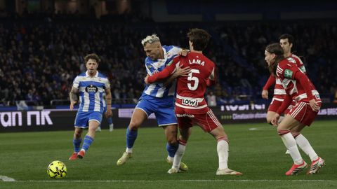 Deportivo, 0: Álvaro Ferllo; Alti, Arnau Comas, Loureiro, Quagliata (Luismi Cruz, min 57); José Ángel (Patiño, min 46), Riki; Mella (Escudero, min 62), Mario Soriano, Stoichkov (Mulattieri, min 72); y Zakaria (Bil, min 57).