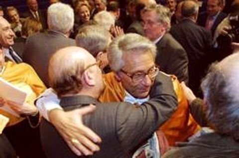 SOLIDARIDAD CON EL PUEBLO PALESTINO. Las imágenes hablan solas. La maquinaria de la guerra de Israel está actuando cual apisonadora en Palestina. Como al poeta, a sus gentes apenas les queda la palabra para seguir resistiendo y pedir auxilio. Mientras la respuesta institucional, tanto de Bruselas y Madrid -José María Aznar es el presidente de turno de la UE- como de Washington, resulta inaudible, los ciudadanos empiezan a impacientarse. En muchas ciudades, Vigo entre ellas, se han celebrado concentraciones. Esta tarde, los vigueses podrán hacer un nuevo ejercicio de solidaridad con Palestina. La cita es a las 20 horas, en Príncipe. Convocan los sindicatos, los partidos políticos -salvo el PP-, la Federación Vecinal y varias asociaciones y colectivos ciudadanos. Dicen los convocantes que es hora de la UE y Naciones Unidas se mojen de una vez. Pues sí, ya es hora. CARTA DESDE RAMALA. El líder de Progresistas vigueses, Manuel Soto, acaba de visitar los campos de refugiados de Tinduf. A través de algunos contactos realizados en ese viaje le ha llegado una carta en la que se explica cómo es la vida en Ramala. Soto nos ha hecho llegar la carta, que firma la directora del Centro Cultural Khalil Sakakini, Adila Laïdi, y en la que, entre otras cuestiones, se recogen los testimonios de varios niños. Alayyan Zayed, de 9 años, explica que no puede salir a jugar a la puerta de su casa. Lema Zayed, de 11, dice que ve como los soldados «nos quitan nuestro país. Nosotros no tenemos nada con que responder». Ahmed Tuqan tiene 7 años y relata que, tras el inicio de la intifada va de una casa a otra. «Cada semana vivimos en una distinta». El testimonio más corto, que no el menos impresionante es el de Sara Atrash. Desde sus 5 años dice «Mama, te amo». La misiva de Adila puede resumirse en una línea del segundo párrafo: «no queremos convertirnos en los Pieles Rojas del mundo árabe. Queremos ser libres en esta tierra, en paz y con dignidad». Eso. CAUSAS Y HONORES. Si los abrazos y apretones de manos se agotasen, los de Julio Fernández Gayoso estarían en la reserva. Y es que fueron cientos los que hubo de repartir a propósito de su doctorado honoris causa. Uno de los más efusivos -a las pruebas de la foto me remito- lo guardó para Manuel Campos Villarino. No sabemos lo que se dijeron, pero hay amores que no necesitan palabras. PADRAZOS. Y hablando de amores, a los que se les cae la baba cuando hablan de los suyos, que no son otros que sus hijas, es a Javier Maté y a Gudelj. Y eso a pesar de que saben que no van a seguir la saga. A Olivia y Caterina, las hijas de Maté, les gusta el tenis, el ciclismo y el ballet; Vanja y Mía, las de Guldelj, aún son pequeñas pero parece que tampoco les tira el fútbol. Ya se sabe, en casa del herrero...