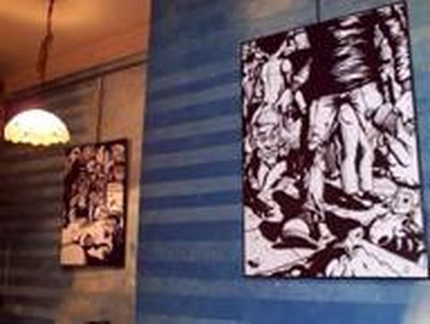 El Café Bizarre, en la calle Irmandiños, inauguró ayer una exposición de Fran Rodríguez, titulada Biodiversidad . Se trata de un trabajo pictórico, relacionado con el cómic, que desarrolla historias urbanas. Se puede ver hasta finales de noviembre, todos los días, a partir de las 18.00 horas.
