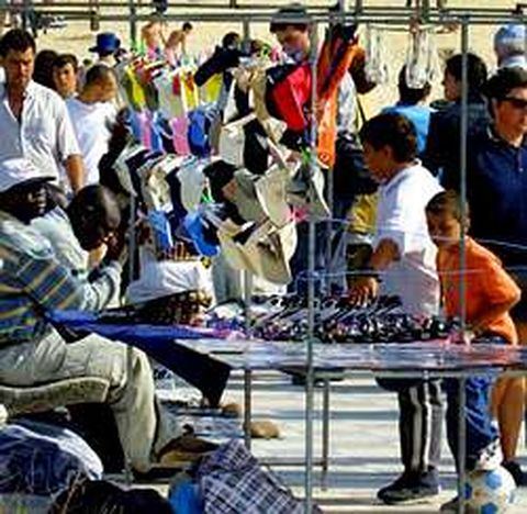 27 jun 2004 . Actualizado a las 07:00 h.Nomadas de la vida que se asientan en Samil. Son vendedores ambulantes que llenan de colorido el paseo de la playa urbana viguesa. Una oferta de los más variados artículos y a precios como si se tratase de casi todo a un euro. Sus clientes son turistas y domingueros y con ellos hacen su agosto durante los meses del verano. El buen tiempo es el mejor aliado para vender los productos, sobre todo los domingos. Se trata de una economía sumergida en la mayoría de los casos, aunque mueve cantidades importantes de dinero. Remisos a hablar de sus negocios, muchos dicen contar con licencia para vender, pero no nos consta que paguen algún tipo de impuesto municipal. En el kilómetro y medio de paseo, sobre todo los domingos, se pueden contabilizar hasta 120 puestos, mientras que a diario acuden muchos menos. Precisamente, en el último día de la semana es cuando incrementan su volumen de ventas que puede rondar los 24.000 euros, con unas ganancias del 50%, que les dejan 12.000 euros en los bolsillos, con una media de 100 euros para cada vendedor. Cuando la playa de Samil está a tope, son alrededor de doce mil los potenciales clientes, por lo que incluso el volumen de ventas se multiplica Este negocio veraniego está practicamente en manos de sudamericanos y africanos, aunque también se puede constatar la presencia de un palestino, cuatro chinas, dos jóvenes catalanas y una paisana, concretamente de Ourense, que es pareja sentimental del apuesto palestino, quienes ofrecen cinturones, aparatos de radio, bisutería, calzado, chanclas para el agua, ropa de verano, sobre todo pantalones cortos, gorras, gafas de sol y relojes. Precisamente, las gorras, con el emblema de los Knicks de Nueva York estuvieron a punto de causarle un disgusto cuando dos efectivos de la Guardia Civil le recriminaron que llevase ese tipo de anagrama. Lo que má vigilan son las marcas y también los cedés, pero ella dijo que ignoraba que esas gorras tuvieran algo que ver. Las vende a cinco euros, aunque decidió retirarlas antes de que la advertencia de la Benemérita se hiciese efectiva. Las catalanas tienen muy claro que «la pela es la pela» y no les importa recorrer más de mil kilómetros desde Barcelona para acudir a Samil. Saben que los meses fuertes son julio y agosto, pero ya han llegado con tiempo. Su negocio de bisutería, lencería y complementos es el más lucrativo y una de ellas, que dijo llamarse Amalia G.C., no tuvo reparos en confesarnos que un buen domingo podía embolsarse 400 euros límpios de polvo y paja, lo que representa una ganancia del 70% sobre la mercancía vendida. La jornada de trabajo comienza sobre las nueve de la mañana. Van llegando por cuentagotas, con cuatro hierros y un toldo montan sus tiendas en un un tiempo récord. Suelen recoger sobre las ocho de la tarde. Algunos almuerzan con bocadillos en sus mismos puestos de trabajo, aunque otros se acercan a algún restaurante cercano, con la confianza de que los demás compañeros le vigilarán la mercancía. Existe un gran compañerismo entre todos ellos. No se estorban, por que cada cual suele instalar su caseta siempre en el mismo lugar y se respetan el espacio, con la particularidad de que los top manta se sitúan en el centro y es, simplemente, por una cuestión de estrategia, para poder recibir el soplo y recoger de inmediato si se acerca algún policía. Hay un marroquí que vende aparatos electrónicos y que habla cinco idiomas, pero, por ahora, no tiene otro trabajo.