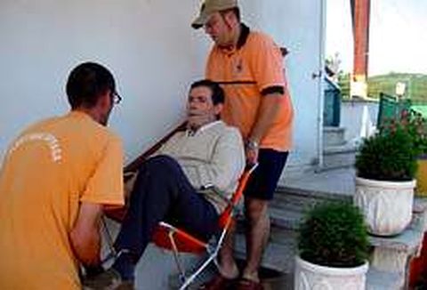 30 jun 2005 . Actualizado a las 07:00 h.Adolfo Gándara Álvarez y María Esther González Almeida son un matrimonio de la parroquia de Vilariño para quienes la vida es mucho más fácil gracias a la ayuda que reciben del departamento de Servicios Sociales y de Protección Civil de O Val Miñor. Adolfo se sometió hace seis años a unas pruebas a raíz de un accidente de tráfico y los médicos descubrieron por casualidad que tenía párkinson. Esta enfermedad degenerativa le obligó a abandonar su oficio de panadero en el establecimiento O Bastón, negocio que ahora sacan adelante sus hijos en la planta baja de la vivienda. Con 59 años, ya no puede moverse, habla con dificultad y necesita una atención constante. María Esther reconoce que sin la colaboración del Ayuntamiento no sabría cómo salir adelante. «Mis hijos trabajan, vienen por la noche y al mediodía para acostarlo, pero el resto del tiempo estoy yo sola, el horario de ellos no es compatible», afirma. Los trabajadores sociales acuden durante tres días a la semana para asearlo. «Antes me ayudaban a bañarlo, pero ahora a causa de una enfermedad de un familiar tampoco puedo hacerlo». La entrada de la casa está en la segunda planta del inmueble y una veintena de escalones separa la puerta de la vivienda de la calle. Los voluntarios de Protección Civil acuden cada tarde para que Adolfo pueda salir a pasear con su mujer. Lo trasladan hasta la planta baja, donde lo montan en un coche. «A veces lo llevo a Baiona, o a Playa América, donde a él le apetezca; después, al cabo de dos horas vuelvo a quedar con los voluntarios para que me ayuden a subirlo a casa de nuevo», afirma María Esther. Servicio diario Los voluntarios de esta unidad con base en el municipio de Nigrán continuarán prestando este servicio hasta que la familia por fin pueda disponer de un ascensor especial para poder subir y bajar a Adolfo con comodidad. Ayer les tocó el turno a Manuel y a Antonio, dos miembros de la directiva de Protección Civil de O Val Miñor. Desde la playa Los miembros Protección Civil interrumpen durante unos minutos su trabajo de vigilancia de playas para poder ir a esta vivienda de Vilariño. «Para nosotros es una satisfacción echar una mano, vendremos a diario siempre y cuando no tengamos alguna emergencia», comenta Manuel. Además, durante los veranos, también se encargan de trasladar dentro de su casa de un joven de 25 años de A Ramallosa. Adolfo Gándara es uno de los vecinos que se benefician del servicio de ayuda domiciliaria que presta al Ayuntamiento de Nigrán y que ayer fue contratado a la empresa Geriatros por un periodo de dos años.