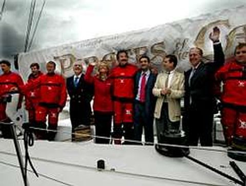 25 oct 2005 . Actualizado a las 07:00 h.?staban prácticamente todos los que son. Nombres que suenan a política compartieron ayer escenario en Punta Lagoa con otros que suenan a empresa, a deporte, a... pero, sobre todo, a mar. La disculpa volvió a ser la Volvo, ese acontecimiento alrededor de cual gira casi todo en Vigo desde hace meses. En esta ocasión se quiso hacer partícipes a los niños. Cientos de escolares, todos ellos de colegios de Teis, acudieron a recibir al Piratas del Caribe , el barco más peliculero de los siete que participarán en la Vuelta al Mundo. A pie de pantalán esperaban la alcaldesa, Corina Porro; el director xeral de Deportes, Santiago Domínguez Olveira; el presidente de la Autoridad Portuaria, Abel Caballero; el director de Buenavista Internacional y hombre de la Disney en España, Javier Vasallo, y el anfitrión, Manuel Fernández de Sousa. A todos ellos se les concedió el deseo de subir a bordo del megavelero. El que más pericia demostró fue Caballero, tras fijarse cómo lo hacía la tripulación que capitanea Paul Cayad. Por contra, Olveira a punto estuvo de acabar con sus huesos en tierra. Entre los invitados que no pisaron la cubierta se encontraban Alfonso Paz Andrade, Rafael Olmedo, Estanislao Durán, Javier de la Gándara, Lucía Molares... Los discursos Llegada la hora de los discursos Javier Vasallo, además de anunciar que se había traído bajo el brazo unas escénas inéditas de la segunda parte de «Piratas del Caribe», subrayó los valores que entraña el mundo de la vela, traducidos en lucha, esfuerzo y trabajo en equipo. Domínguez, por su parte, aprovechó el mapamundi que habían colocado sobre el estrado, para ofrecer una lección de geografía. Por supuesto, convirtió a Vigo en el ombligo del mapa. Finalmente, tanto entusiamo quiso poner la alcaldesa en su intervención, que más pareció que estuviera riñendo a los niños que contándoles lo importantes que son para la ciudad acontecimientos como la Volvo. Pero ayer la estrella eran Paul Cayad y su tripulación. Cuando todo acabó le contó a La Voz que la costa gallega es bellísima. «El mejor lugar de España». Y habla con propiedad, porque conoce Baleares _vivió medio año en Mallorca_, Cataluña, Valencia... Está deseando que sea 4 de noviembre para que llegue Icka, su mujer, y enseñarle este «paraíso», al que piensa volver como turista. Por el paisaje, por las gentes pero, sobre todo, por la comida. «El pescado es exquisito». Lo dice un hombre que, desde que se inició en la vela a los siete años, ha recorrido todos los océanos. También en lo deportivo es sincero: «Telefónica es uno de los que más posibilidades tiene. Pero daremos batalla».