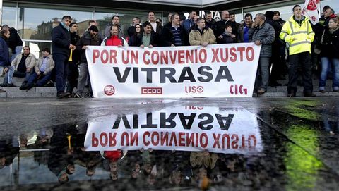 07 dic 2012 . Actualizado a las 19:47 h.Los trabajadores del transporte público de Vigo llevaron hoy sus protestas a la calle al encontrarse en punto muerto las negociaciones. Pancartas en mano se manifestaron primero ante la puerta del Concello y a continuación lo hicieron delante del edificio de la Xunta en la ciudad. Posteriormente se desplazaron hasta la entrada de Vitrasa, que de momento se niega a seguir negociando de forma conjunta con todos los sindicatos. El alcalde, Abel Caballero, por su parte, negó que haya dado instrucciones al concejal de Tráfico para que se reúna con ellos.