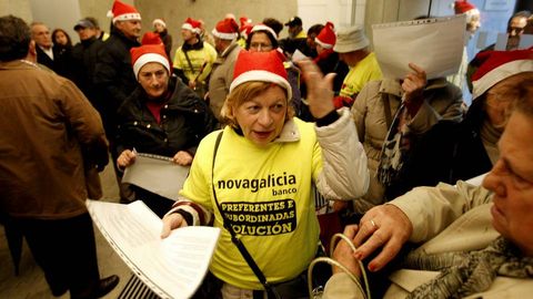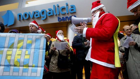 13 dic 2012 . Actualizado a las 22:18 h.Ho, Ho, Ho. Papá Noel llega este año cargado de peticiones en lugar de regalos. En la lista se incluyen las devoluciones de los ahorros de los afectados por las preferentes de la plataforma de Vigo y O Val Miñor.