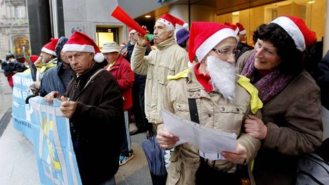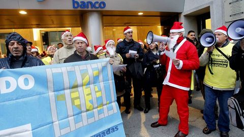 Un grupo de vecinos se ha disfrazado de Papá Noel para su habitual protesta de los jueves