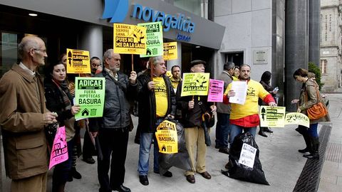 06 mar 2013 . Actualizado a las 20:25 h.Un grupo de personas se ha manifestado esta mañana en Vigo contra los abusos bancarios. Los participantes estaban convocados por Adicae y que rían mostrar su rechazo por las cláusulas abusivas de las hipotecas.