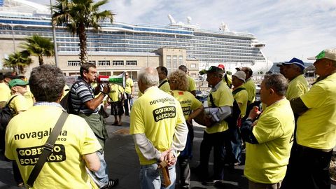 19 jun 2013 . Actualizado a las 01:33 h.Los preferentistas siguen haciéndose notar en cada acto importante que hay en la ciudad. Hoy han recibido a varios miles de cruceristas del Royal Princess, uno de los mayores buques de pasajeros del mundo que hizo su primera escala en Vigo. Los turistas, que han tomado el centro de la ciudad animando el comercio de la zona, mostraron su sorpresa nada más desembarcar. Agentes de la Policía Local estuvieron presentes para garantizar la normalidad y evitar mayores incidentes. El gigante Royal Princess tiene capacidad para más de 3.600 pasajeros y fue amadrinado por la duquesa de Cambrigge, Kate Middleton. Tiene 330 metros de eslora y es el tercero de mayores dimensiones de cuantos han atracado en la Estación Marítima. El PP ha criticado al gobierno local por no aprovechar su tirón turístico y no programar ningún acto con motivo de la visita.