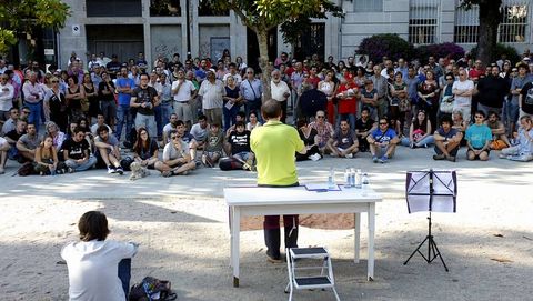 14 jun 2014 . Actualizado a las 23:36 h.Tras los excelentes resultados obtenidos en las elecciones europeas, el círculo Podemos de Vigo celebró esta tarde, ante cerca de trescientas personas, su primera gran asamblea con el objetivo de que todas aquellas personas interesadas en formar parte de este colectivo pudiesen plantear sus dudas e inquietudes en una reunión abierta, en plan foro romano en uno de los espacios verdes con más solera de la ciudad, la señorial plaza de Compostela.