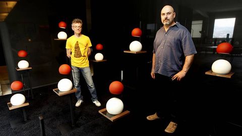 El diseño y la confección de la lámpara Bb ha llevado su tiempo. «Viendo el material de desuso que teníamos en el taller, y partiendo de dos esferas oxidadas, nos pusimos a pensar qué podíamos hacer», sitúa Luis Lago el inicio del proceso creativo. Y salió un prototipo. «Fuimos realizando variaciones hasta llegar al actual; fue un proceso de tres años de duración», añade. Esta primera serie consta de trece unidades numeradas y con la marca creada para la ocasión: Lago:Monroy. «Es nuestra primera serie, pero tenemos más prototipos pendientes de evolución», indica Luis Lago.