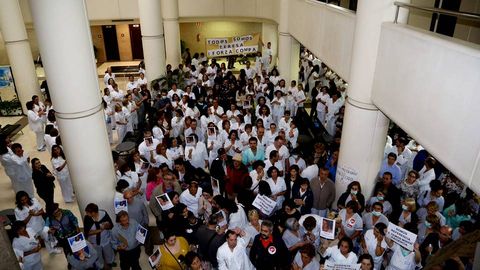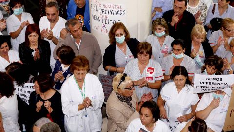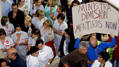 Decenas de profesionales se concentran en el Meixoeiro contra la gestión de la crisis del ébola