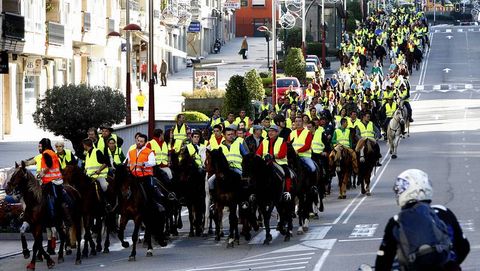 30 nov 2014 . Actualizado a las 18:21 h.Acostumbrados a manifestaciones de todo tipo, los ciudadanos que no sabían que hoy estaba prevista una ruta a caballo por el centro de Vigo no daban crédito ante lo que estaban viendo y oyendo: cientos de jinetes a caballo y el sonido de los cascos contra el asfalto en vez del habitual ruido de los motores de los coches. La iniciativa partió de dos aficionados a la hípica, Manuel Carrera y su mujer, Hilda Álvarez, propietarios del restaurante Cen Gaiteiros en la zona de Barreiro, en Cabral. De allí partió la marcha que atravesó Ramón Nieto, Jenaro de la Fuente, Travesía de Vigo, Vía Norte, Vázquez Varela, plaza de España, Gran Vía y avenida de Castelao hasta Samil. Desde la playa iniciaron de nuevo el camino de vuelta hacia el restaurante, donde dieron buena cuenta de un cocido. La policía local encabezaba la marcha que contaba con el permiso del Concello de Vigo y los organizadores se ocuparon también de que un retén de limpieza fuera recogiendo las deposiciones de los animales.
