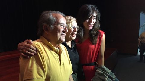 La líder de Ahora Madrid se reunió con los responsables de la Marea de Vigo, con los que intercambió impresiones y saludos. El acto de homenaje reunió a cientos de personas en el salón de actos de la Fundación Abanca en Vigo.