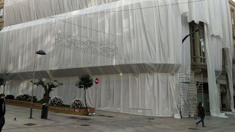 16 dic 2015 . Actualizado a las 18:41 h.La fachada de la antigua sede del Círculo mercantil lleva varios días sufriendo una transformación que bien podría ser una performance del artista búlgaro Christo Javacheff, que junto a su mujer Jeanne-Claude Denat se hizo famoso por envolver espacios naturales y edificios monumentales como el edificio del Reichstag, el Pont Neuf de Paris o las puertas de Central Park. Pero lo de Vigo no se trata de una acción artística, aunque tiene su vertiente creativa. Se trata de una iniciativa del Real Club Celta para celebrar la llegada a su nueva casa, compartiéndolo con la ciudad de este modo que consiste en empaquetar el edificio con cientos de metros de lona blanca como si de un regalo se tratase. La empresa encargada rematará la obra poniéndole un lazo y está previsto un acto aún por definir. El inmueble del arquitecto Gómez Román que inauguró Alfonso XIII en 1927 inicia una nueva vida en tonos celestes.