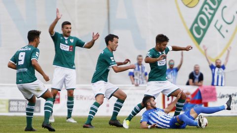 En la recta final del primer tiempo fue cuando el Coruxo comenzó a desperezarse aprovechando sobre todo la velocidad y verticalidad de Álex Arias desde la banda izquierda. Sin embargo, las ocasiones claras de los verdes brillaron por su ausencia.