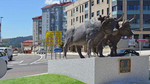 22 may 2019 . Actualizado a las 05:00 h.La rotonda del alto de Puxeiros luce desde ayer una obra del escultor mosense Lucas Míguez. Se trata de una pieza que representa a dos bueyes que recordarán el trabajo que se hacía antiguamente en la zona. Puxeiros fue desde siempre un lugar de intercambio y refuerzo de parejas de bueyes que tiraban de los carros desde las comarcas vecinas. Se trata de una escultura en fundición de bronce que alcanza el metro ochenta de altura. Olimpio Javier Míguez Mosquera, conocido profesionalmente como Lucas Míguez, desarrolló la mayor parte de su actividad profesional en Creative Ceramics, en Estados Unidos.