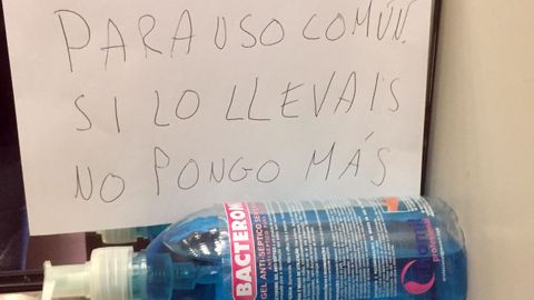 En el elevador de Camelias 117 hay una amenaza solidaria escrita sobre un bote de hidrogel que alguien ha puesto para compartir, pero advierte: «Si alguien se lo lleva, no pongo más». Y en una semana, nadie se lo ha llevado. Ni en dos.