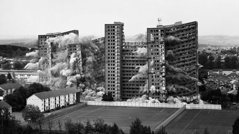 24 sep 2020 . Actualizado a las 05:00 h.Hoy • 19.00 horas • Gran Vía, 129 • La Galería SVT, en Sirvent, inaugura la exposición Para acabar en el suelo, de Damian Ucieda. Captura, con la meticulosidad de la fotografía analógica de gran formato, el instante de derribo de cuatro torres de viviendas de protección oficial en Glasgow. Es también el documento del fracaso de un proyecto de integración social: el estallido final del declive urbanístico y económico de una comunidad abatida por el paro y la exclusión.