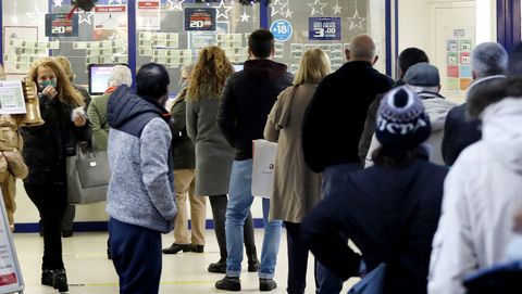 Las colas eran especialmente largas en la administración de la Porta do Sol, que repartió otro décimo del gordo estas Navidades.