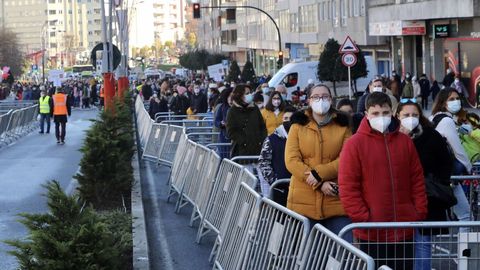 06 ene 2021 . Actualizado a las 05:00 h.Ni el frío ni el miedo al coronavirus impidieron que se acumularán muchas personas para acceder al recorrido por el posado que ayer hicieron los Reyes Magos en plena avenida de Castelao. Sin embargo, salvo momentos muy puntuales, especialmente por la mañana, la organización de la Cabalgata estática pudo mantener una distancia prudencial entre los distintos grupos familiares que esperaban para acceder al recinto cerrado donde se encontraban las carrozas. Eso sí, las fotografías tomadas con una cierta perspectiva pueden dar la sensación de que no se había conseguido el objetivo inicial. El Concello calcula que se realizaron unas 7.000 reservas familiares y que participaron unas 35.000 personas durante toda la jornada.