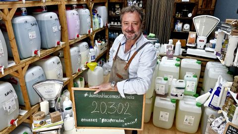 La venta de este tipo de productos a granel, como detergentes, friegasuelos o lavavajillas, es menos conocida, pero está comenzando a coger fuerza. Javier Zamuz abrió 4eco Vigo a principios del 2019 con una idea completamente innovadora en la ciudad. En su tienda oferta todo tipo de productos de limpieza, completamente veganos y más de un 95 % biodegradables. Dejar a su «hijo un planeta mejor» es su gran meta, y por eso montó un sistema circular en el que apenas interviene el plástico. Cada vez que se le termina un producto, reenvía el mismo envase a los proveedores para que lo rellenen.