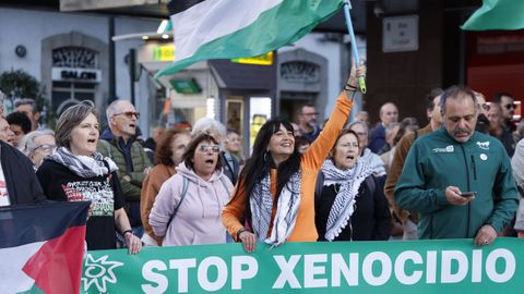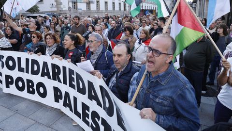 «Galiza está co pobo palestino» y «A infancia de Gaza non é unha ameaza» son dos de los lemas con los que los manifestantes expresaron su rechazo a la ofensiva militar israelí y pidieron a la comunidad internacional que actúe para frenar la escalada de violencia. La protesta se desarrolló de forma pacífica.
