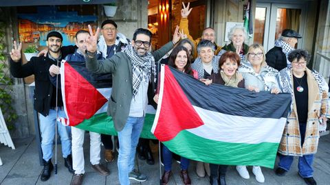 El hostelero que fue denunciado por echar de su restaurante a un grupo de israelíes celebra el archivo de su causa con personas que le apoyaron