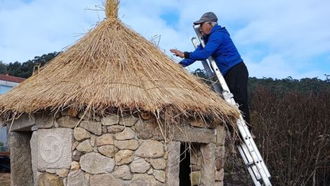 «Traballamos tres horas ao día, de 9.00 a 12.00 horas, cando o tempo o permitía», explica. Tardaron prácticamente dos meses en construir su casa castreña. «A base é de pedra, e o teito, de palla pegada cunha rede a un armazón de madeira», indica. También han dejado dos ventanas para ventilar una estancia que durante esta Navidad acogerá un belén. «Desde a comunidade de montes imos aproveitar para decorala ben. Ademais, a casa vai estar ao lado da nosa árbore de Nadal», explica. Chiño está orgulloso de como ha quedado la réplica. «Vén moita xente a vela», dice. Los vecinos los acompañaron siguiendo de cerca el proceso constructivo y, ahora, se ha convertido en un reclamo turístico más de Camposancos. «Queremos que todo quede bonito e que siga crecendo», insiste.