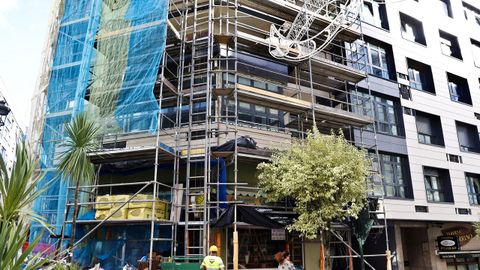 «Hemos tenido que insistir muchos, nos ha costado tres llamadas. Si no lo hacían ellos las retirábamos nosotros por nuestra cuenta porque no podía trabajar, dice la arquitecta técnica Susana Fernández Cobián, que ha dirigido las obras de renovación de la fachada del inmueble. Fernández había presentado una denuncia al Concello. «Esto era un peligro», dice le jefa de obra que alerta del riesgo que supone amarrar las luminarias en los soportes que sostienen una reforma.