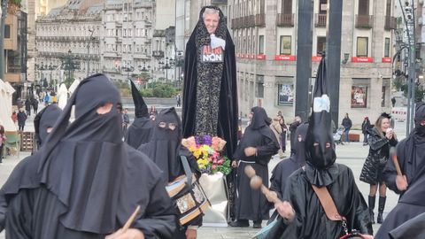 La comparsa decana de la ciudad recorrió el Casco Vello con su santa, entre tambores y lágrimas de cocodrilo, a pesar del aplazamiento oficial del desfile